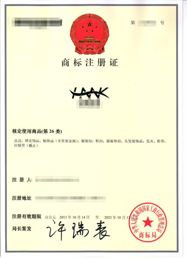 商標轉讓——第26類(lèi)商標(鈕扣拉鏈 )