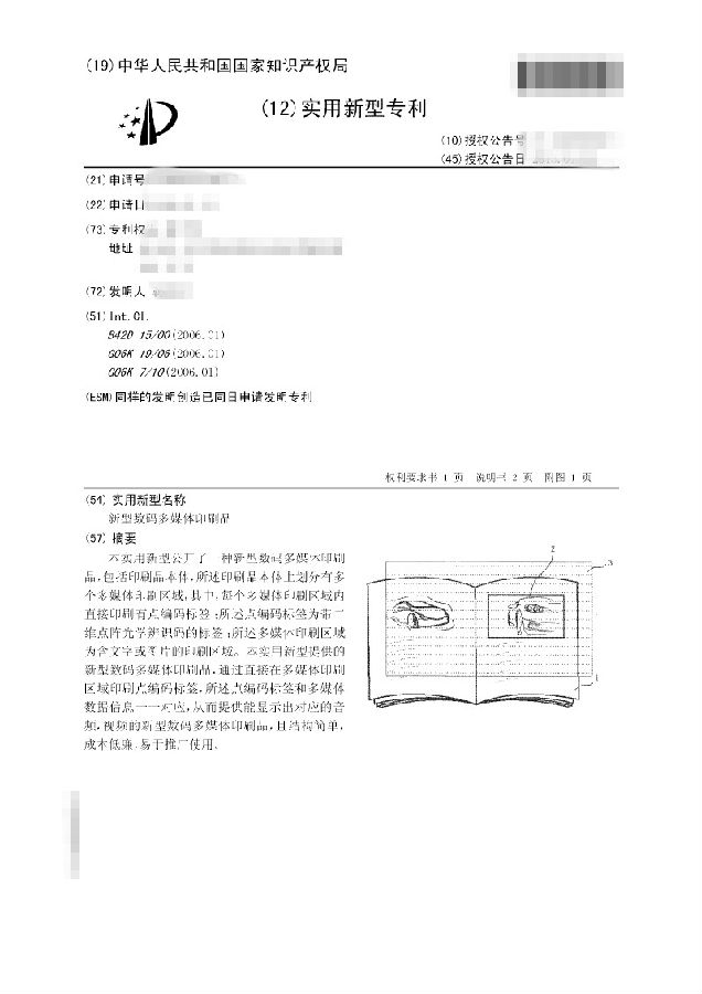 專(zhuān)利轉讓—— 新型多媒體印刷品(發(fā)明、實(shí)用)