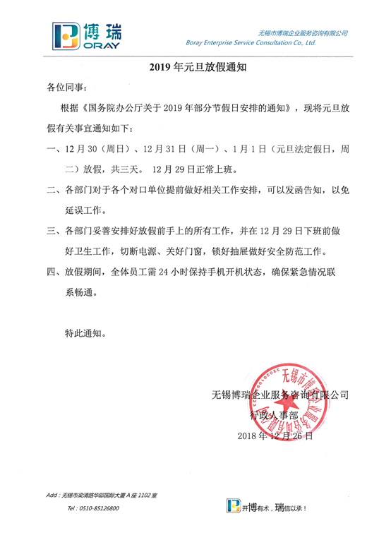 2019年元旦放假通知